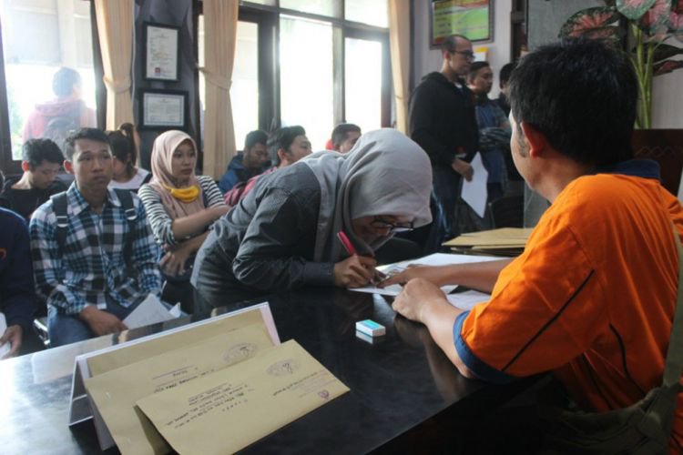 Merdeka.com, Malang - Jumlah pemohon Surat Keterangan Catatan Kepolisian (SKCK) di Kota Malang mengalami kenaikan drastis jelang pendaftaran Calon Pegawai Negeri Sipil (CPNS). Para pemohon mengantri dan memenuhi ruang yang disediakan oleh Polres Malang Kota.