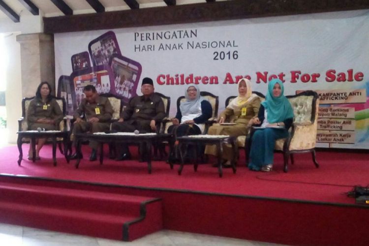 Merdeka.com, Malang - Dalam rangka memperingati Hari Anak Nasional Tahun 2016, Pemkab Malang menggelar kampanye anti trafficking yang dikemas menjadi beberapa kegiatan diantaranya dialog bersama Bupati Malang H. Rendra Kresna, lomba poster, serta musyawarah kerja laskar anak Kabupaten Malang. Peringatan tahun ini sendiri mengangkat tema "Children are not for sale".
