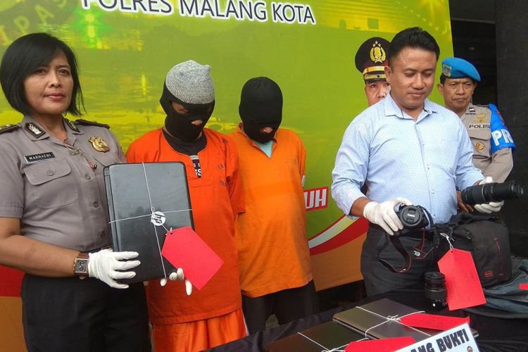 Dua pelaku pembobolan, Okky Suswanto (29) dan Andi Setiawan (29) berhasil menggondol sejumlah barang berharga dari sebuah rumah di Perumahan Kanjuruhan Asri Kota Malang. Keduanya berhasil menggondol tiga laptop, kamera DLSR dan lensa.
