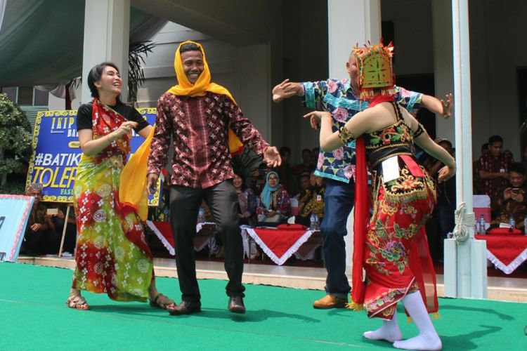 Merdeka.com, Malang - Anggota Komisi VI DPR Rieke Diah Pitaloka menjadi penari gandrung dalam peringatan Hari Batik Nasional yang digelar di Kota Malang, Jawa Timur. Tanpa canggung, Rieke memainkan sampur yang mendadak dikalungkan ke lehernya oleh seorang penari Gandrung Banyuwangi.