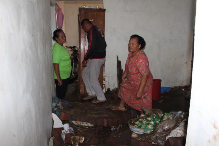 Seluruh perabotan seisi rumah basah dan beberapa hilang tersapu air. Buku-buku pelajaran milik anaknya basah dan sebagian juga tidak karuan. Keduanya langsung menyelamatkan diri membawa keluar kedua balitanya, begitu tembok di ruang tengah roboh.