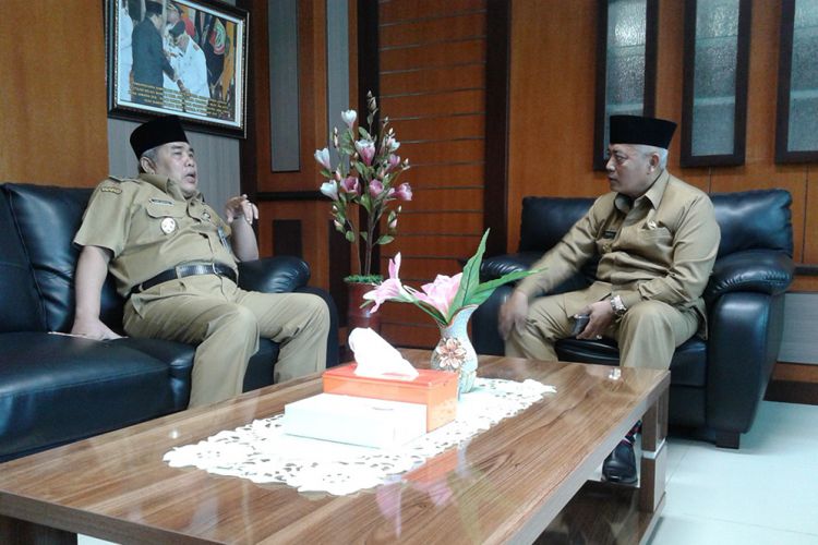 Merdeka.com, Malang - Wakil Bupati Malang, H.M. Sanusi menerima kunjungan Wakil Bupati Kebumen, KH. Yazid Mahfudz, di komplek Kantor Bupati Malang, Kota Kepanjen, Senin (14/11). Kedatangan tamu spesial tersebut dalam rangka ngangsuh kaweruh atau study banding langsung ke Pemerintah Kabupaten Malang. Tepatnya, terkait pembinaan keumatan yang telah dilaksanakan pada 378 desa dan 12 kelurahan di wilayah Kabupaten Malang.