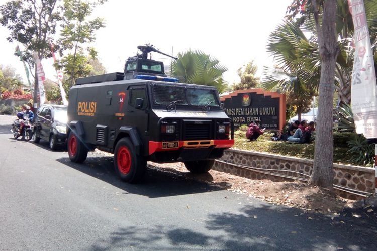 Merdeka.com, Malang - Menjelang pendaftaran bakal pasangan calon Walikota dan Wakil Wali kota, kantor Komisi Pemilihan Umum (KPU) Kota Batu mendapat penjagaan ketat. Para personel gabungan disiagakan berikut kendaraan operasional pengaman.