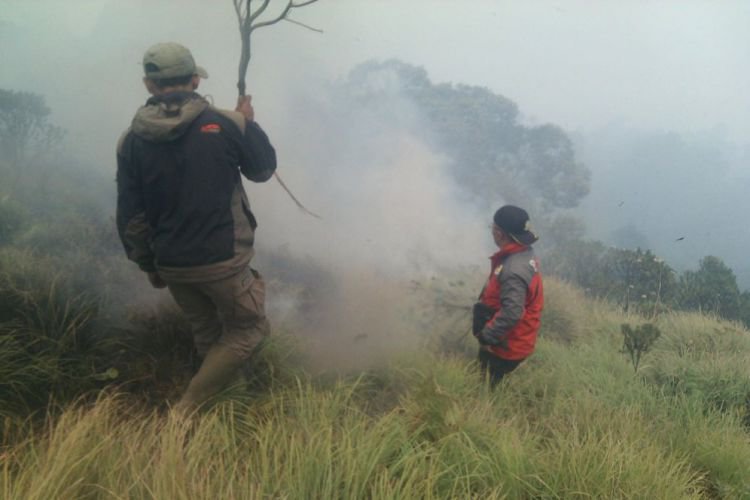 Fariana mengatakan, pihaknya bersama masyarakat sedang mengupayakan pemadaman di lokasi. Pemadaman dilakukan baik secara manual maupun dengan peralatan yang melibatkan masyarakat umum, TNI dan Petugas TNBTS.