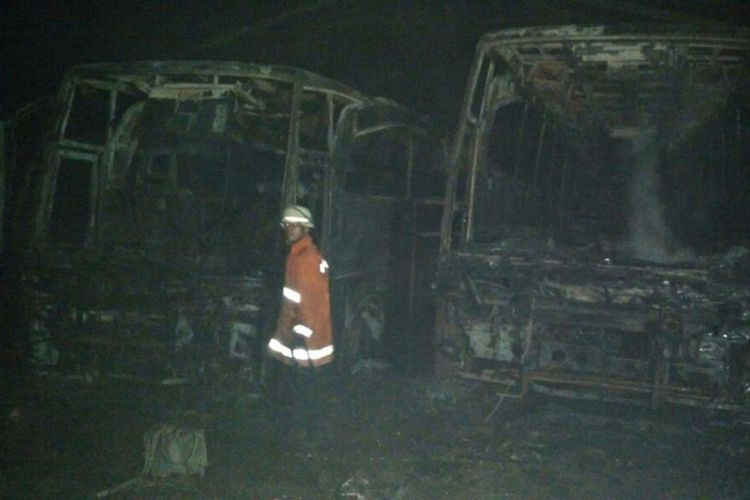 "Saya tahunya sudah terbakar. Saya tidak tahu, pokoknya sudah terbakar semua. Di gudang ada lampu-lampu, thinner, tetapi kalau di bus tidak ada apa-apa," katanya.