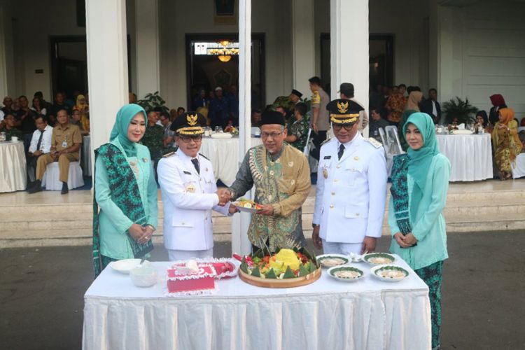Merdeka.com, Malang - Drs. H. Sutiaji dan Ir. H. Sofyan Edi Jarwoko menggelar tasyakuran dan silaturahmi di Balai Kota Malang usai resmi dilantik sebagai Wali Kota dan Wakil Wali Kota Malang. Prosesi pelantikan dan pengambilan sumpah berlangsung di Gedung Negara Grahadi Surabaya dipimpin oleh Gubernur Jawa Timur, H. Soekarwo, Senin (24/9).