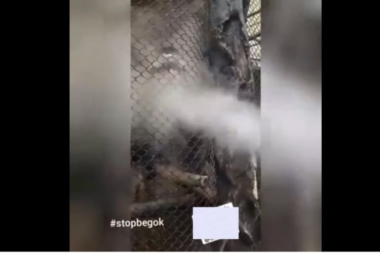 Seorang pria menyemburkan asap dari mulutnya ke wajah monyet jenis Red-Tailed Guenon hingga tersedak. Pria yang tampak berjalan berombongan itu berlalu sambil tertawa-tawa. Video diunggah di akun @Doniherdaru pada Minggu, 29 Juli 2019.