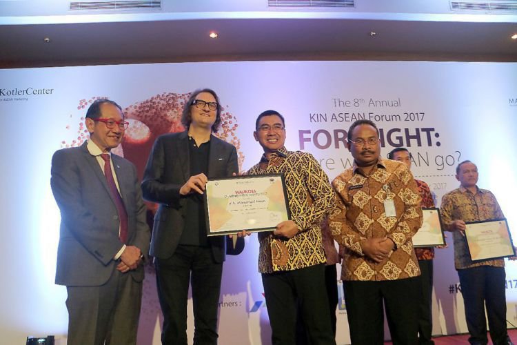 Keduanya sama sama mengamini pentingnya mengembangkan manajemen kreatif dalam memajukan daerah. Penghargaan diberikan di acara The 8th Annual KIN ASEAN Forum 2017 di Ritz Carlton Hotel Jakarta, Rabu (6/12).