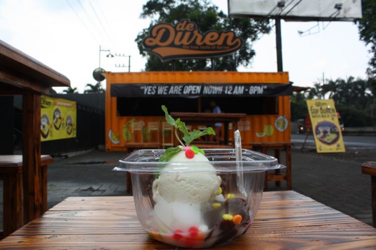 Konsep yang diusung oleh De Duren, memang tergolong unik. Mengingat lokasinya yang memang terletak di pinggir jalan raya, De Duren menyediakan tempat yang cukup asik untuk menikmati berbagai menu yang kental dengan durian sambil berbincang-bincang bersama kawan, kerabat atau keluarga. Uniknya, kamu bisa menikmati manisnya ice cream sambil memandangi kendaraan yang lalu lalang di sekitaran jalan tersebut.