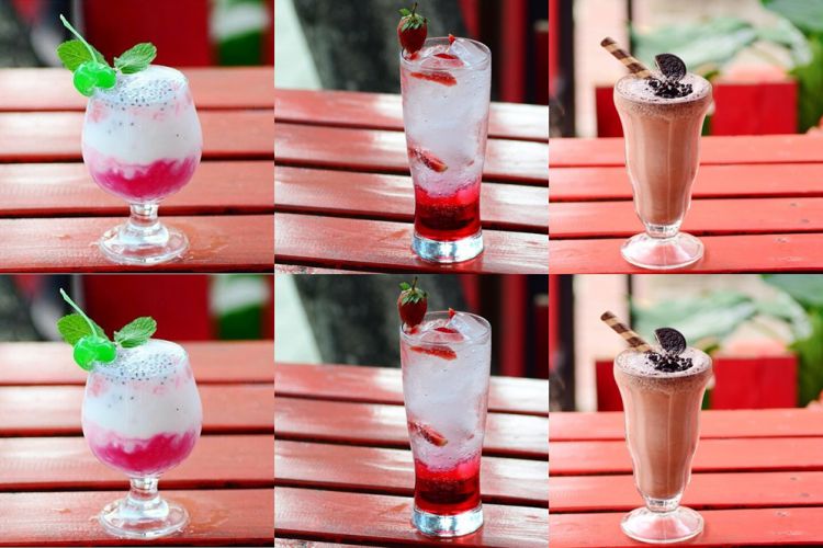 Berbicara mengenai menu, kafe ini menawarkan berbagai pilihan es seperti es cuba cheese, fruity flavor, shocking strawberry, ice chocolate, milk shace coffe ice, dan masih banyak menu lainnya.