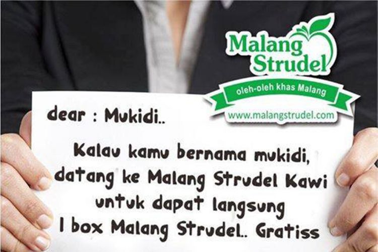 Nama kamu Mukidi? Malang Strudel punya hadiah khusus buat kamu. Tengok di sini!