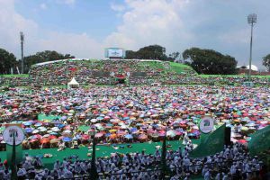 Puluhan ribu muslimat NU rela berdesakan menunggu Jokowi