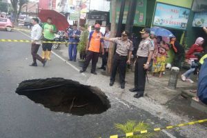 Tak di duga, lubang besar muncul di jalan Terusan Bondowoso!