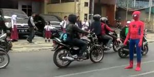 Spiderman atur lalu lintas bikin heboh warga Kota Malang