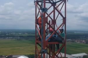 Demi dipertemukan dengan istri dan anak, Osep Saiku nekat panjat tower 72 meter