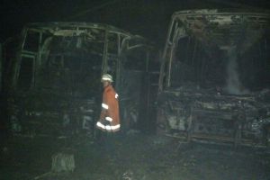 Tengah direparasi, tujuh bus di Singosari hangus dilalap api