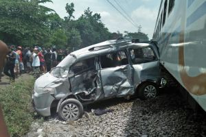 Mobil ditabrak kereta, ibu dan anak tewas seketika