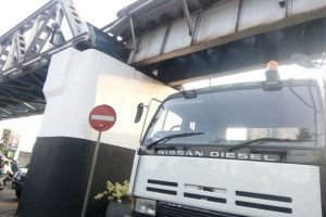 Ditabrak truk kontainer, rel jembatan buk gluduk Kota Malang bergeser