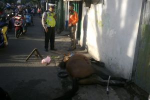 Kuda malang ini ditemukan tewas di jalan, diduga korban tabrak lari