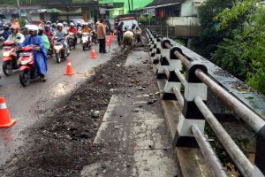Hujan deras, jembatan Bandulan dipenuhi material bebatuan