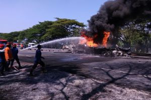 Truk tangki Pertamax terbakar di tol porong, stok di TBBM Malang aman