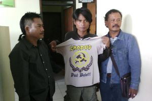 Pria pemakai kaus palu arit dikenakan wajib lapor