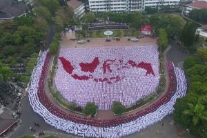 Aksi mahasiswa baru UMM bentuk formasi peta Indonesia dan doa untuk Lombok
